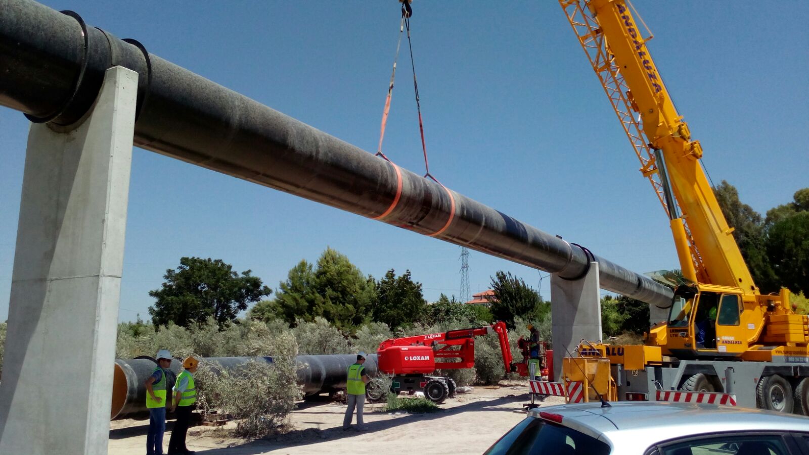 Para sostener la tubería aérea, dada la gran luz a salvar, es necesario ejecutar un conjunto decinco soportes que sustenten la conducción proyectada, generando un total de cuatro vanos detubería.
